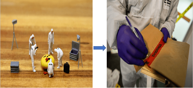 The scientist first analyzes the DNA profile of the sample found at the crime scene, followed by any DNA profiles from known samples. For example, if a CSI tech found a bloody knife and wanted to figure out who was injured, they would collect a swab of the “unknown” blood, then DNA samples from all suspects and victims. The lab technician would first independently determine the profile of the “unknown” sample, and then all of the “known” samples collected. Both types of DNA profiles are analyzed separately to avoid introducing bias from the analyst for the comparison stage.