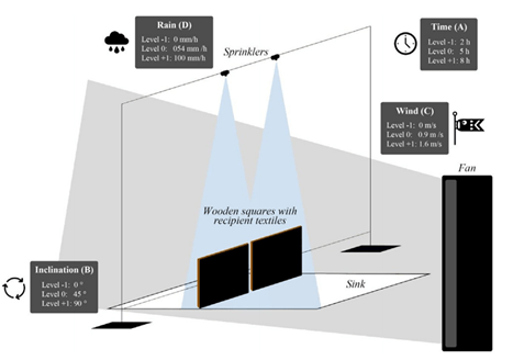 Textile fibers often play a key role in forensic investigations as they connect suspects, victims, and crime scenes days or even years after their occurrence (Fig. 1). The amount of fibers exchanged between these players depends on factors during the crime, such as clothing material (e.g. cotton fibers onto polyester jacket) and the contact between them (e.g. long or short, tight or loose), and after the crime, such as the time to collect the evidence and the environment between occurrence and recovery. Fortunately, research and investigator experience has shown there is little loss of transferred fibers when collected from static material, such as fibers on a shirt worn by a dead body. However, exposure to the outside and stormy weather may significantly hasten this fiber loss. This motivated the authors of this study to quantitatively evaluate the effects of several weather conditions on fiber transfer to a clothed, deceased body.